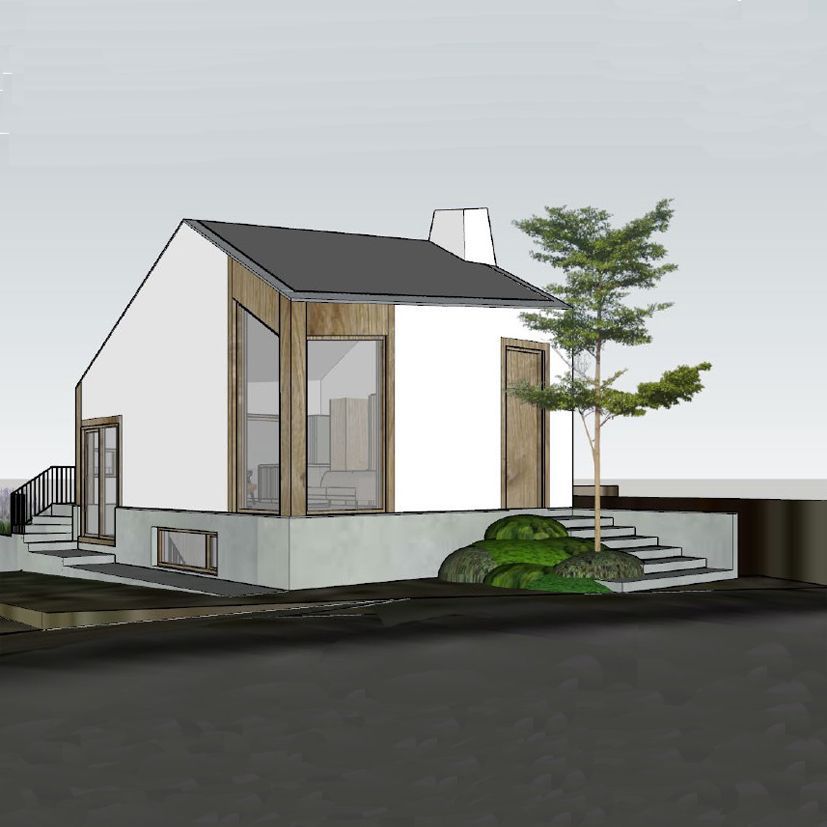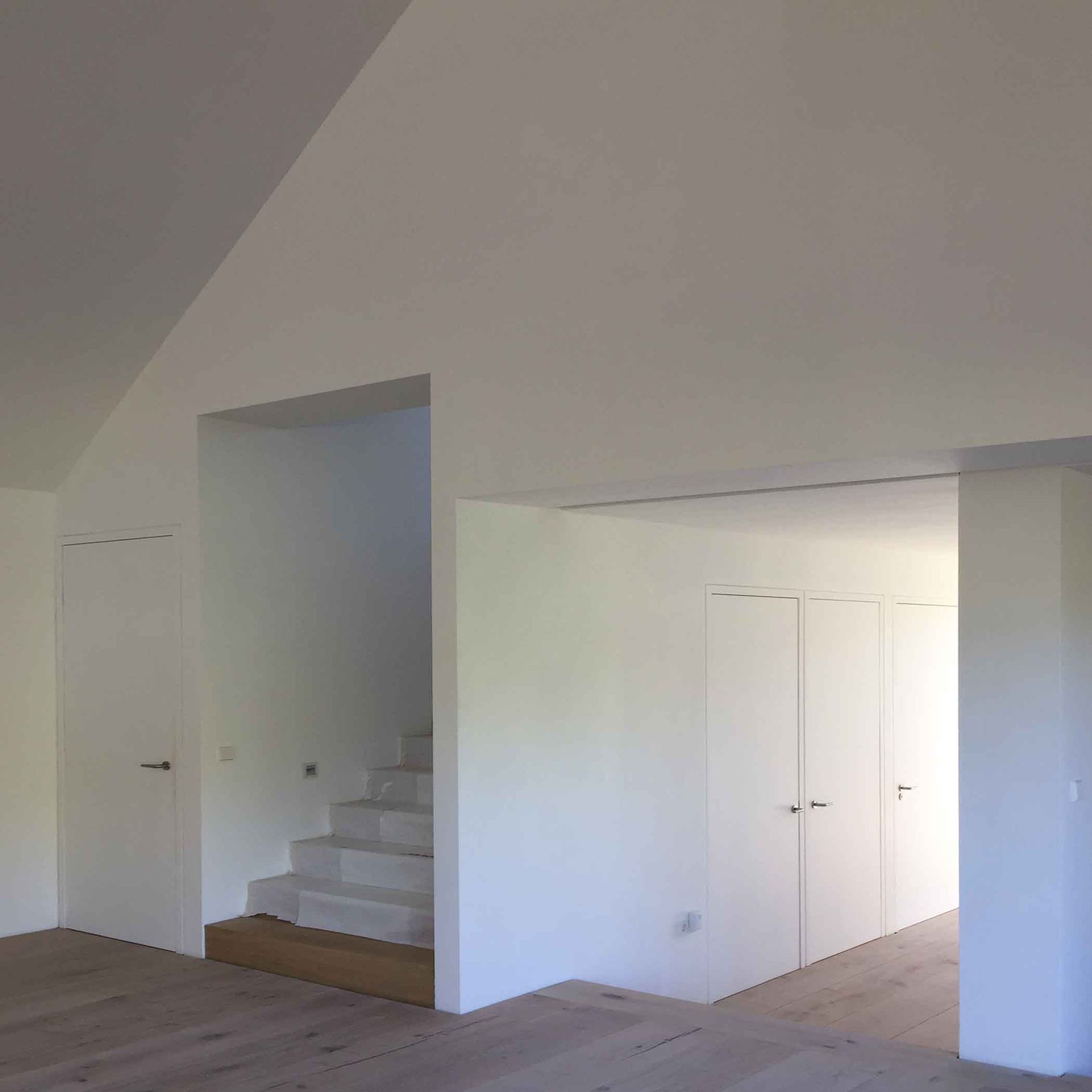Dennenberg 2 in Kasen, Bunde heeft een heel nieuwe uitstraling gekregen. De voormalige woning was verouderd en niet goed geïsoleerd. De schuine daken lekten in de kilgoten en leverden onefficïente leefruimten op. We hebben de muren opgetrokken en plattedaken gerealiseerd. De totale woning is met isolatie ingepakt en wit gestuukt. Het geeft meteen een frisse strakke uitstraling. Bij de volgende fase, die nu in uitvoering is, worden de kozijnen vervangen en de voordeur met hout bekleed, waardoor deze een uitnodigende uitstraling krijgt. De totale verbouwing zorgt voor een energieneutrale duurzame woning met een strak en warm karakter.