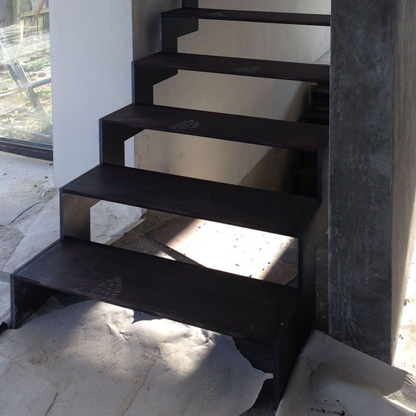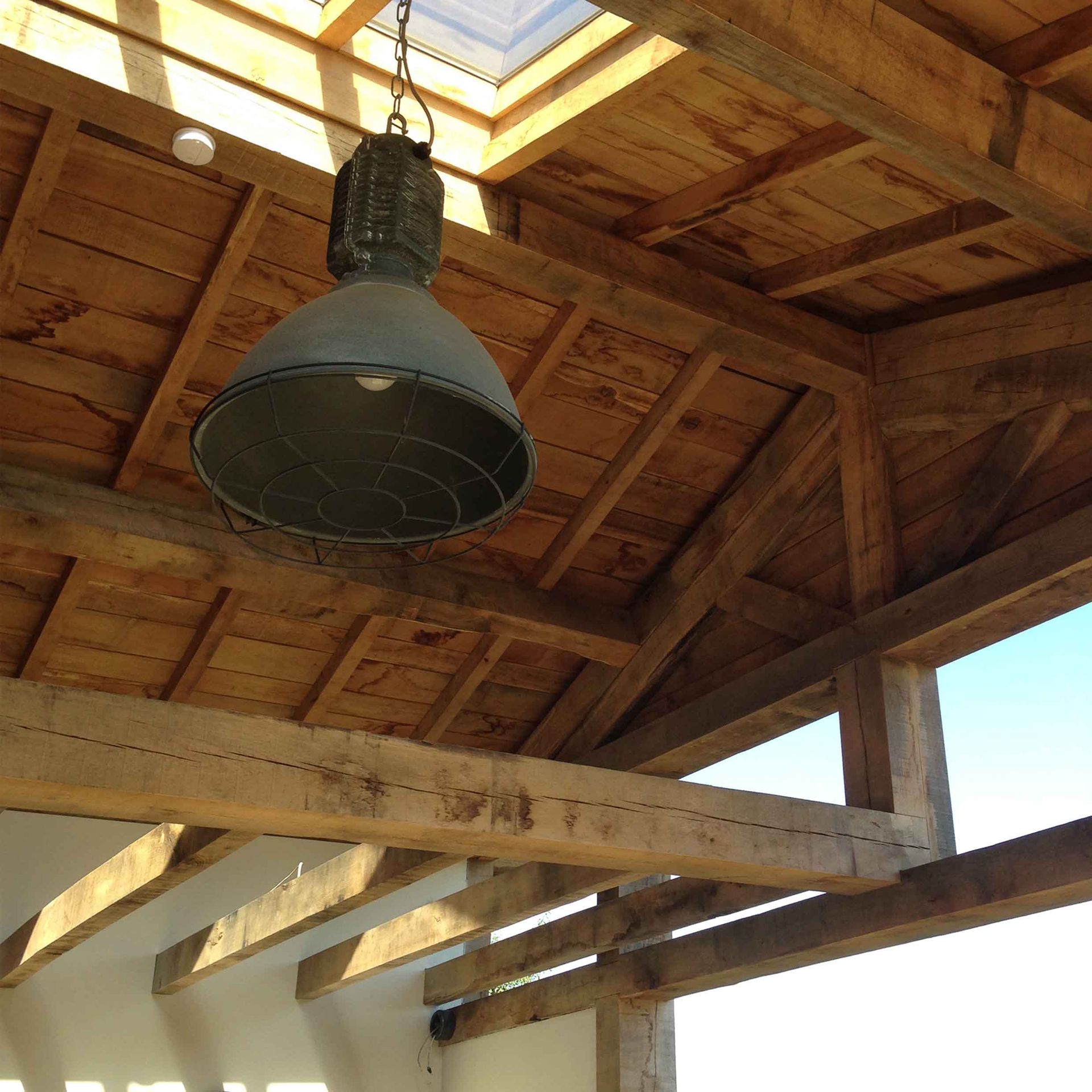 Het huis bestaat uit een open volume met stalen spanten. De badkamer is in het midden van deze hoge ruimte opgehangen. Er ontstaat zo een mooie vide. Stalen schuifdeuren en een stalen trap zorgen voor een stoer karakter.