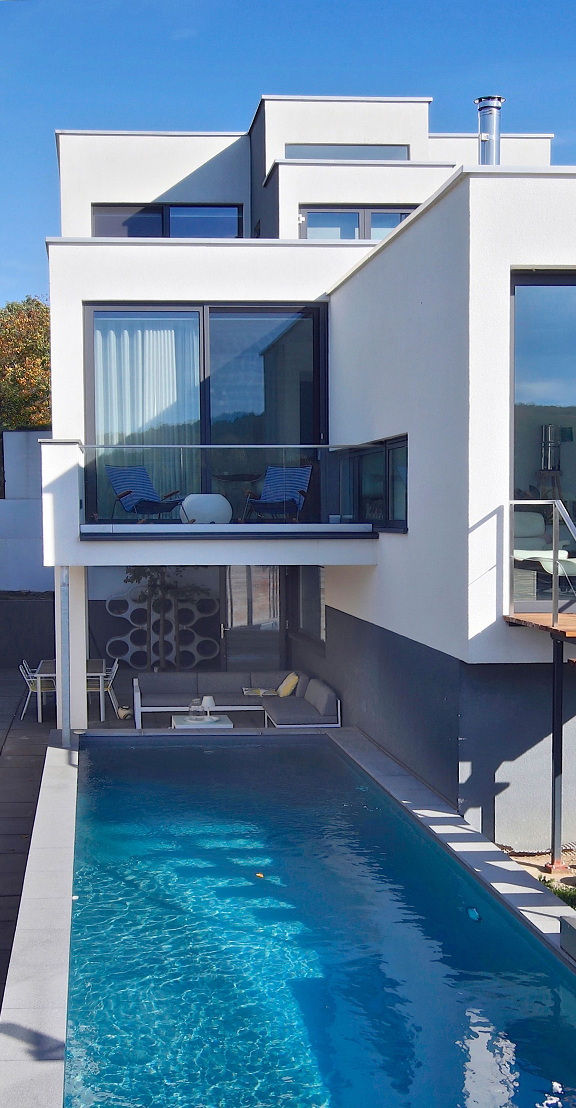 Een woonhuis ontwerpen op een smal maar diep perceel met een groot niveauverschil is een mooie uitdaging. Daarbij is het uitzicht schitterend. daar wil je natuurlijk vanuit iedere leefruimte van kunnen genieten!