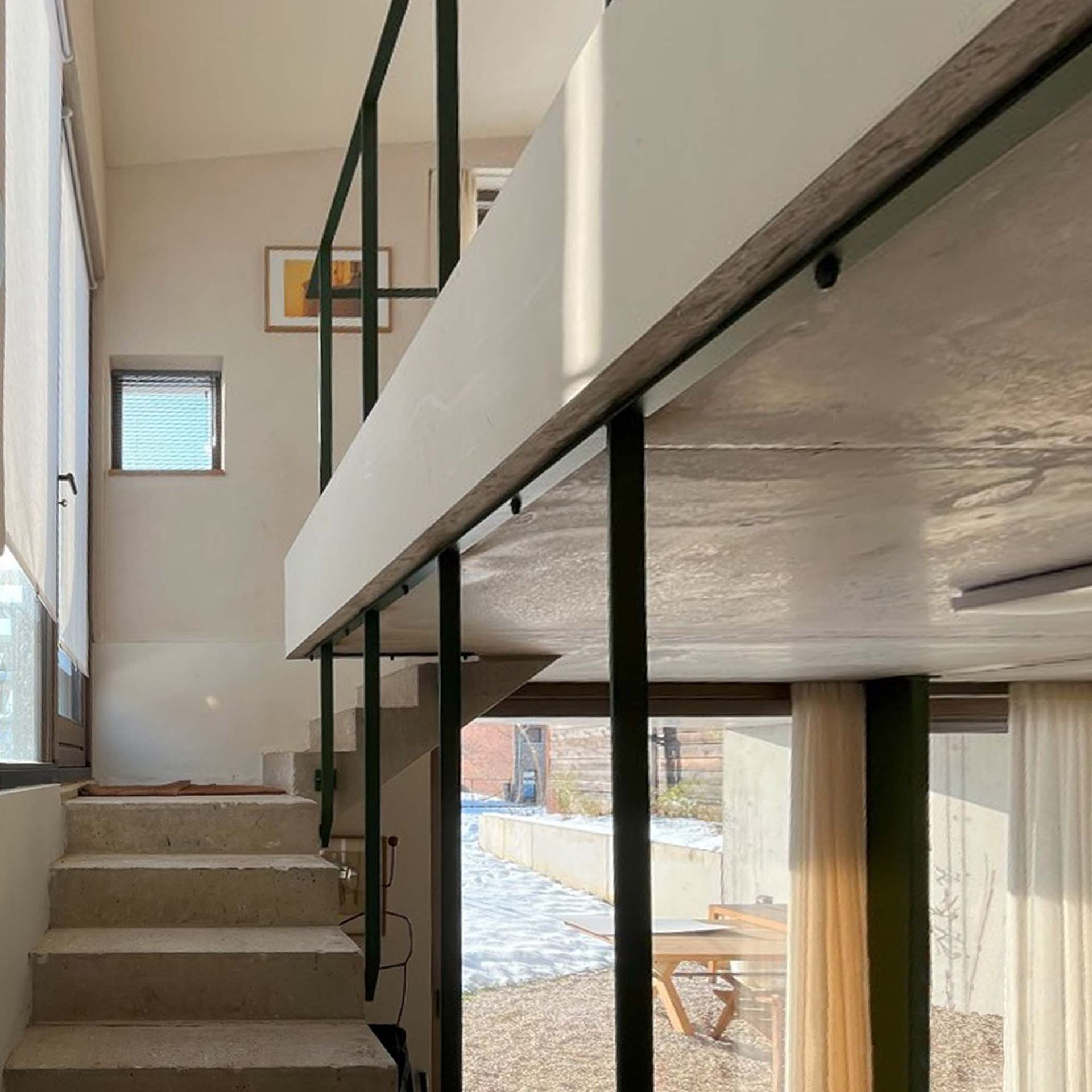 Een apart uitnodigend woonhuis ontworpen rondom een hoge, open, lichte woonruimte met ramen gericht op het landschap en een koele slaap en werkkamer in het souterrain met aansluiting op de tuin.